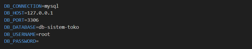 2. Konfigurasi Database di .env lalu ubah database sesuai dengan database itu sendiri, dan pastikan terkoneksi dengan database itu sendiri.