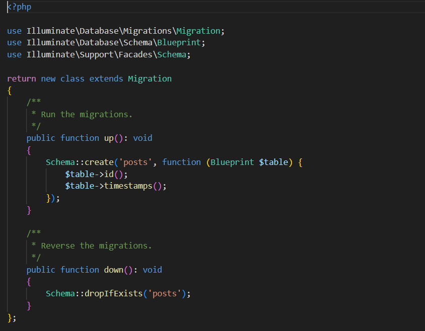 a). Migration Pertama (untuk tabel POST)