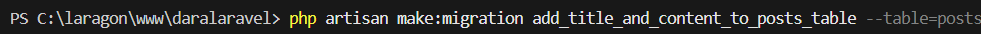 b). Migration Kedua (untuk menambah kolom title dan content)